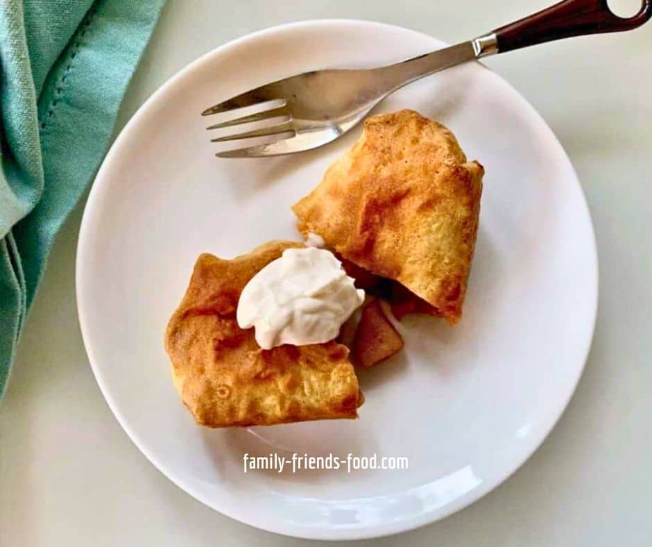 Spiced apple blintzes Thin, golden crepes are folded around a sweet, fragrant fruity filling. Delicious with cream, sour cream, or a dollop of yogurt.