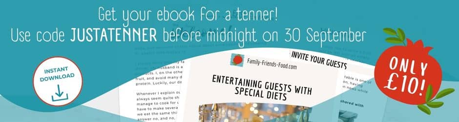 PLUS, don't forget that you can snag a copy of my ebook Entertaining Guests with Special Diets for the bargain price of Β£10 by using code JUSTATENNER at checkout. It's a great resource that makes it easy to plan menus, cook and host diners with diverse needs.