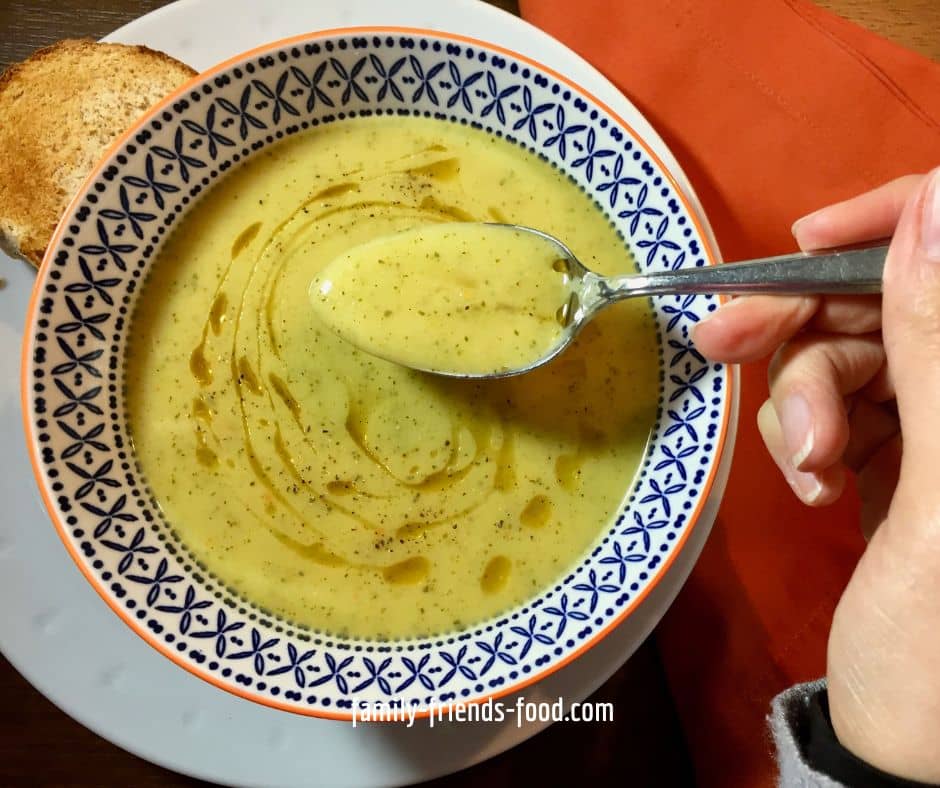 βCreamy courgette and potato soup (vegan)β Full of fabulous flavours, this creamy soup is a perfect Autumn starter, or a light lunch with some buttered bread.